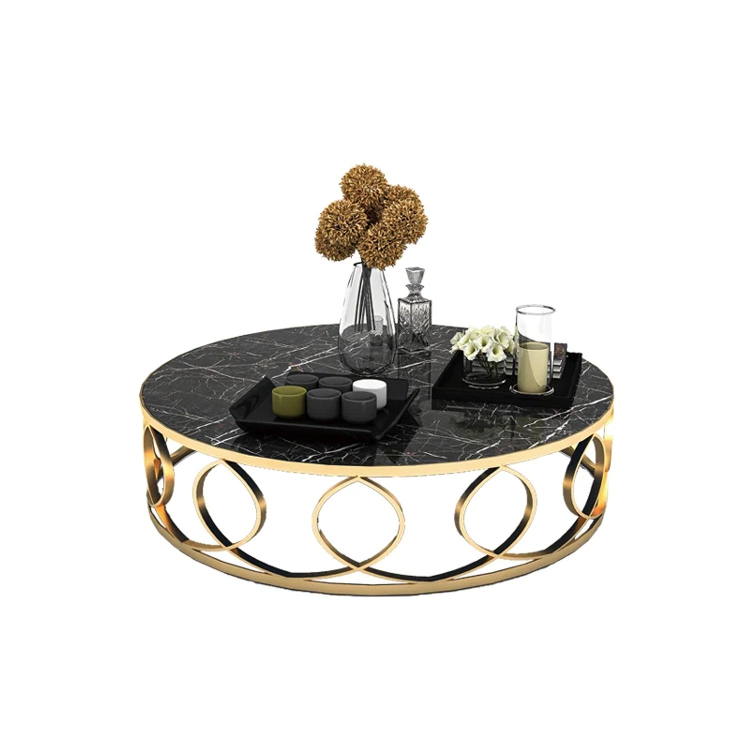 錬鉄製のフレームが付いている大理石のコーヒーテーブル